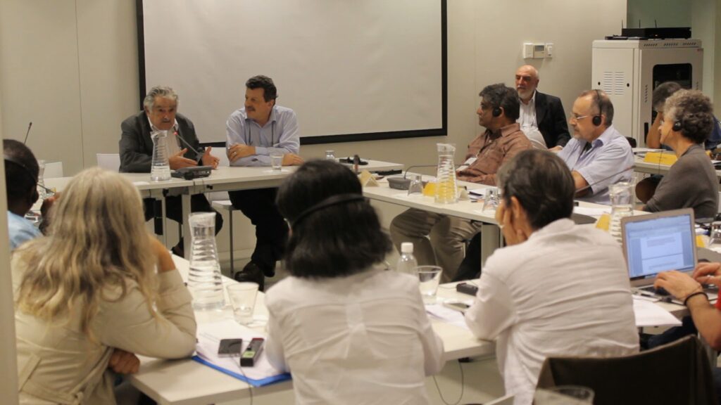 José Mujica with the author and a group of international civil society campaigners during a Social Watch strategy meeting in Montevideo, 2014